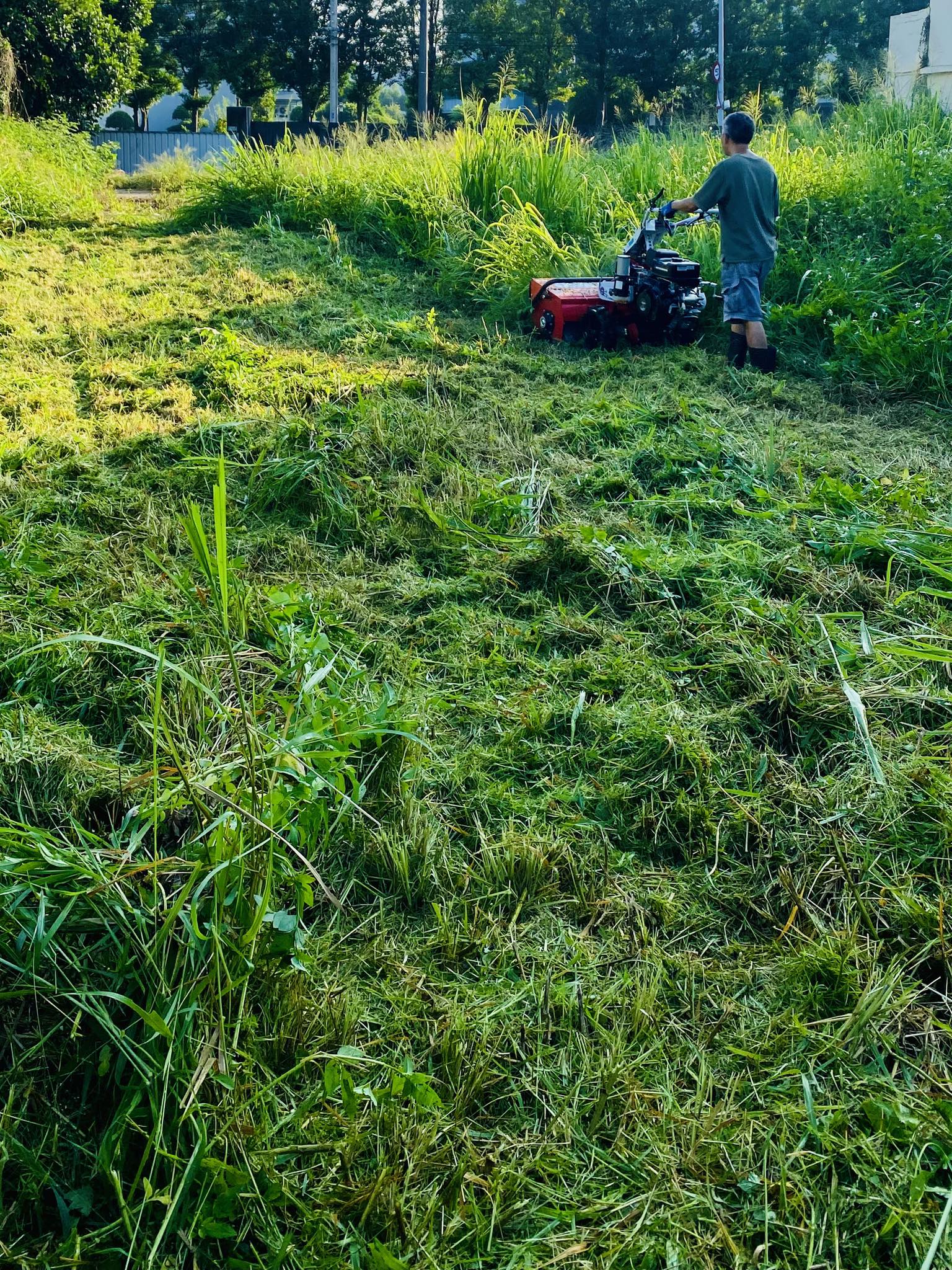 今天一早就去除草,草都比我高了,穿過草原去開門,今年增添一台新的除草機器,剛開始先生操作不是很流利,到最後越來越順手,相信他會被草鍛鍊成除草高手!